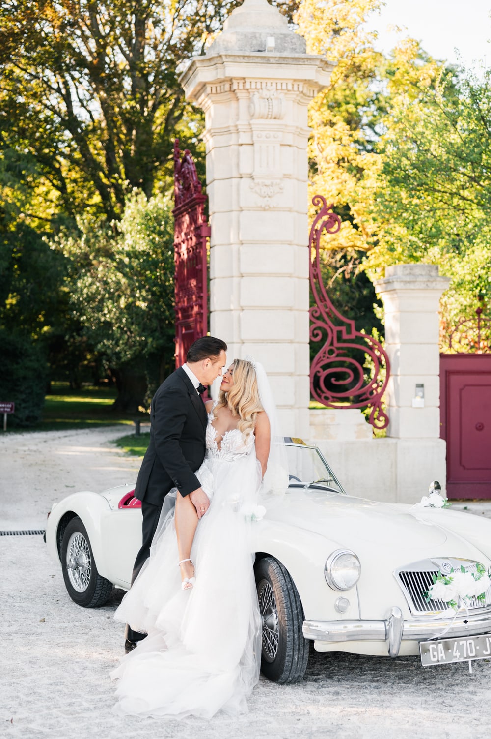 C’est le grand moment pour moi et un magnifique souvenir pour vous. L’instant suspendu des photos de couple pour votre mariage au château des 3 fontaines. Ce domaine incroyable se prête avec brio à de précieux souvenirs, que ce soit en intérieur ou en extérieur, le terrain de jeu est grandiose. Le coucher de soleil sera l’instant idéal pour faire des photos à deux avec votre voiture de collection. Vous pourrez ensuite réaliser des clichés dans le parc et face au château. Le tout baigné par une lumière dorée. Le château des 3 fontaines est parfait pour des photos éditoriales, chic et luxueuses. Un véritable patrimoine familial intemporel !